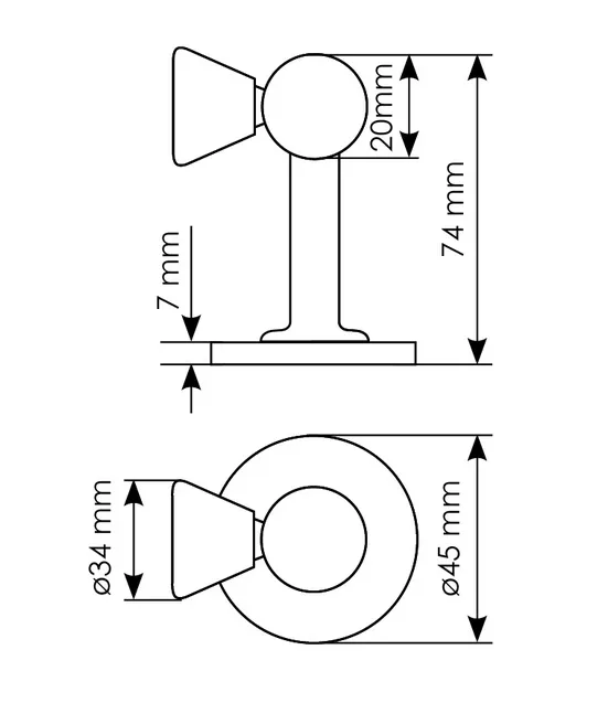 Ограничитель дверной MDS-3 PC магнитный, цвет хром