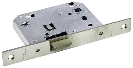 Сантехническая защелка с пластиковым язычком. Используется для бесшумного запирания дверей в сантехнические помещения. Межосевое расстояние 70мм.